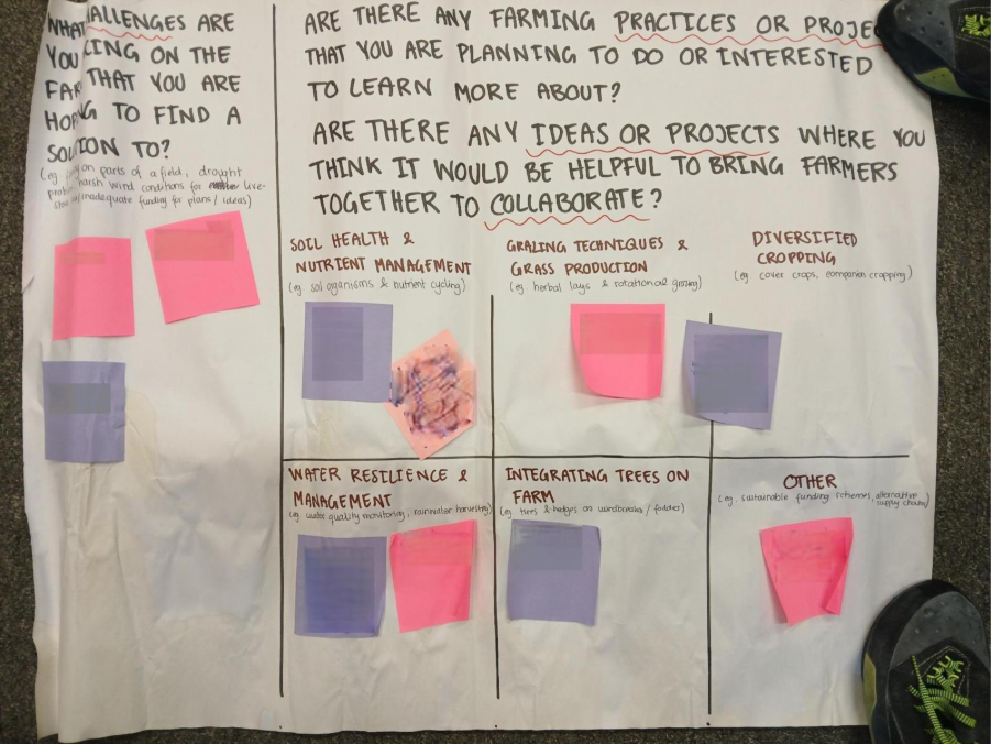 After introductions and a short presentation on why Forth Rivers Trust has taken the initiative to facilitate the network, we explored farmers’ key challenges, interests, and ideas. Discussions ranged widely, with farmers expressing a strong interest in learning more about soil health, nutrient management, grazing techniques, water resilience, and integrating trees on farms. Ideas shared included soil testing and composting, rotational grazing, rainwater harvesting, and creating shelterbelts. We also discussed challenges and opportunities for water quality monitoring, the impact of rivers and water on agriculture, and strategies to reduce downstream erosion.